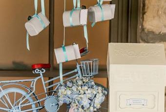 Les vélos rappellent aussi le thème de mariage autour de la campagne. c’est pourquoi des vélos personnalisent également des sac se toile offerts a certains invités VIp qui repartiront avec un accessoire siglé, et donc personnalisé, des prénoms des mariés!