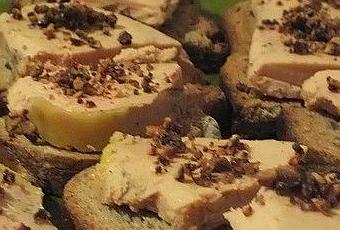 Foie gras mi-cuit à la noisette torréfiée, muscovado et épices grillés