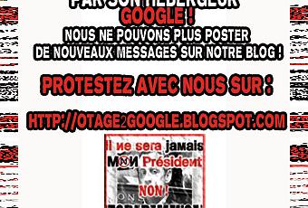 "A l'heure actuelle nous dependons d'une reaction de 'Blogger' BLOGGER etant le service d'hebergement de Blogs fourni par GOOGLE "On" tente de fermer notre blog : Torapamavoa Nicolas" qui denonce avec humour (noir) les derives de la politique et de l'homme-President Sarkozy http://torapamavoa.blogspot.com DEPUIS PLUSIEURS HEURES MAINTENANT / NOUS NE POUVONS PLUS POSTER DE NOUVEAUX ARTICLES SUR NOTRE BLOG."