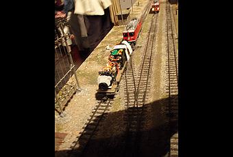 Je suis allé voir MnemoPark vendredi passé à la Bordée. Pour cette pièce, un modèle réduit à l’échelle 1/87 d’un village suisse est installé sur la scène. Un petit train équipé d’une caméra peut la parcourir (photo, + de photos ici) et les images qu’il capture sont projetées sur un écran. Un écran vert permet aussi à certains moments de superposer les acteurs à l’image projetée, pour faire comme s’ils se trouvaient dans la maquette. En fait, les cinq acteurs n’en sont pas vraiment. Quatre d’entre eux sont des retraités suisses qui ont fabriqués la maquette dans leurs passe-temps. Pour en savoir plus sur le contenu de la pièce, je vous invite à lire ce texte de mon parrain, qui m’a offert les billets (merci Jean!). Je me suis bien amusé durant la pièce… et après la pièce, puisqu’on peut aller visiter la mini-Suisse et discuter avec ses créateurs.