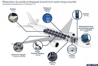 En avril 2013, la compagnie aérienne Air France a achevé le renouvellement de ses 3 650 conteneurs à bagages de soute sur ses avions long-courriers (Airbus A380, A340, A330, Boeing 777 et 747). Ces nouveaux conteneurs plus légers réduisent le poids général de l'avion avant et pendant le vol. Ils sont désormais constitués de panneaux de fibre composite et non plus d'aluminium, et ne pèsent plus que 72 kilos contre 83 kilos auparavant. Cet allègement de l'avion permet une réduction d'émissions de CO2 de 8 000 tonnes par an, correspondant à 2 500 tonnes de kérosène.