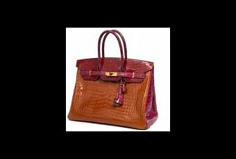 Le sac à main Birkin d’Hermès s’est vendu à 63800 euros dans une vente aux enchères parisienne le 21 mai 2013. C’est un sac fabriqué en 2006 est fait d’une matière exceptionnelle à savoir en crocodile porosus une espèce marine qui rend ce sac tricolore à savoir orange, rouge et rose. Sa garniture est en métal plaqué or avec tirette clochette, clefs, cadenas gainé en crocodile rose et l’intérieur est doublé en chèvre orange pour comprendre une poche à fermeture sur glissière, une poche plaquée et une double poignée.