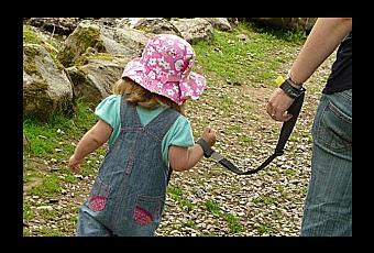 Elle m'a raconté qu'auparavant elle utilisait une sorte de cordon - choisi de préférence au harnais pour sa discrétion - qui s'attache d'un côté au poignet de la maman, de l'autre à celui de l'enfant.