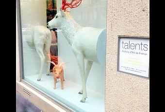Ce temps est révolu et c'est pour cette raison aussi que l'association des Ateliers d'Art de France a sa légitimité. Et c'est une histoire qui date de 1868 tout de même. Plus de 6000 artisans d'art répertoriés, comment passer à côté? L'association fait la promotion de "la création d’objets uniques ou de petites séries qui présentent un caractère artistique". Et c'est justement cette démarche de recherche artistique que l'association met en avant grâce à ses vitrines et galeries.J'ai découvert des petites merveilles grâce à la responsable de la boutique Talents de l'avenue Niel à Paris : Nathalie Slomczynski qui vous accueille de manière charmante. Quand on entre dans son espace, c'est gai, chaleureux, poétique et surtout que d'artisans/artistes doués doués doués. De la sculpture, de la céramique, des techniques mixtes travaillées avec talent et modernité, de la verrerie d'une finesse et d'une beauté incroyables. Au delà de l'artisanat il y a de réels artistes qui vous permettent d'acquérir à des prix tout à fait raisonnables un bel objet chez vous, à mi-chemin entre art et design. Si vous allez dans la boutique située dans le quartier d'Opéra vous découvrirez un univers plus épuré et design.