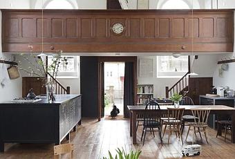 Vous n’allez peut être pas le croire mais cette maison était il y a 10 ans une chapelle avant qu’elle ne subisse cette magnifique rénovation par l’architecte Jonathan Tuckey. On aime ici les grands espaces et les hauts plafonds mais aussi la déco composée essentiellement de matériaux bruts qui renforcent son cachet et son authenticité. Le rendu est canon mais cela doit être bizarre de vivre dans une ancienne église …