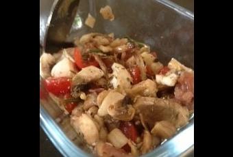 Faire une vinaigrette avec 2 c. à soupe d’huile + 1/2 c. à soupe de vinaigre