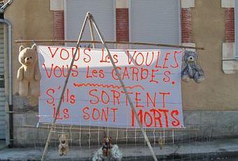 Rendez-vous a été donné au public intéressé dans le Biros (Ariège), lieu de vie du responsable du réseau Pyrénées de FERUS. En arrivant les participants n’ont pu que constater le montage ci-joint devant les bâtiments communaux : des ours en peluche pendus avec les inscriptions « Vous les voules vous les gardes. S’ils sortent ils sont morts. ». Ce montage a eu lieu dans la nuit précédant la sortie terrain thématique « Ours brun » et a été vécu comme une agression par les personnes inscrites à cette randonnée.