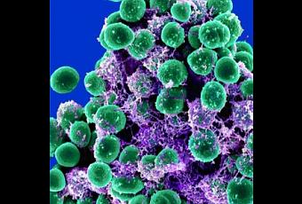 - Staphylococcus aureus (Visuel ci-contre) (38,1% des souches résistantes à la méticilline)