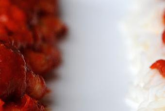 Dans la poêle faire revenir les crevettes et mettre la sauce aux poivrons laisser mijoter 10 min .