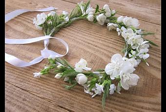 Il y a des créateurs de géni qui sont spécialisés dans les couronnes et les coiffures de fleurs fraîches. ils sont souvent fleuristes spécialisé dans le mariage.