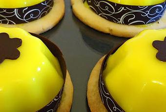 Cet entremet est composé d'une simple mousse au chocolat blanc Zéphyr recouverte d'un glaçage miroir jaune. Le tout est posé sur un sablé breton recouvert s'un sirop aux zestes d'agrume.