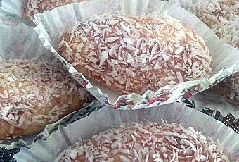 Enduisez les gâteaux dans de la confiture puis enrober les avec de la noix de coco.