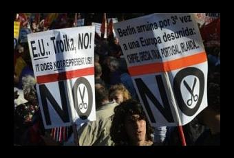 Sous le mot d'ordre "Tous unis contre la troïka", au son des percussions et des sifflets, plusieurs milliers de personnes ont défilé samedi à Madrid comme à Lisbonne et d'autres villes de la péninsule ibérique, dans le cadre d'une journée européenne de manifestations contre la crise et l'austérité.