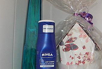 Il y a quelques semaines, j'ai gagné chez Sandra un lait pour le corps" sous la douche" de Nivéa. Le principe est d'appliquer son lait hydratant après s'être lavé, mais lorsque l'on est toujours sous la douche, puis de le rincer.