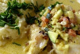 Servir avec une purée montée à la crème fraîche et saupoudrée de ciboulette émincée.