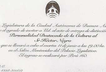(1) Héctor Negro est présent dans Barrio de Tango, recueil bilingue de tangos argentins, que j'ai publié aux Editions du Jasmin en mai 2010 (www.editions-du-jasmin.com), ainsi que dans Deux cents ans après, le Bicentenaire de l'Argentine à travers le patrimoine littéraire du tango, où il a un cahier à lui tout seul, sorti sous la forme du numéro spécial de la revue Triages, en janvier 2011, chez Tarabuste Editions