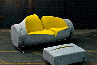 J’ai flashé sur ce canapé Slashed imaginé par le designer londonienne Charlotte Kingsnorth. Des lignes acérées et un design doux à la fois. Slashed est un simple cylindre éventré, comme un boudin qu’on ouvre au couteau. Tout se passe ici comme si le tube de mousse avait été coupé en longueur et en son milieu, révélant une belle couleur jaune, particulièrement accordée avec le gris de la surface. Une idée géniale, parfaite par un repose pied (ou un pouf) lui aussi éventré, pour accueillir des revues. Du design inventif, soyeux et confortable comme on l’aime. Matériaux : cadre en acier inoxydable, mousse rembourrée.