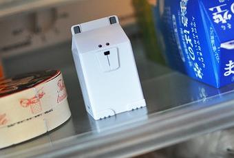 en forme de petite brique de lait à mettre dans votre frigo. Lorsque vous l'ouvrirez, la petite bestiole vous saluera en Japonais ou en Anglais (oui oui, ils parlent!), et si vous laissez la porte ouverte trop longtemps, il se fâchera et vous rappellera à l'ordre ! Economies d'énergie non d'un Fridgeezoo ! Rigolo et mignon non ?