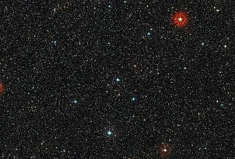 Cette image montre le ciel autour de la jeune étoile HD 95 086, située dans laconstellation de l'hémisphère sud de la Carène. C'est autour de HD 95 086 que l'on a peut-être photographié la plus légère des exoplanètes. © ESO, Digitized Sky Survey 2, Davide De Martin