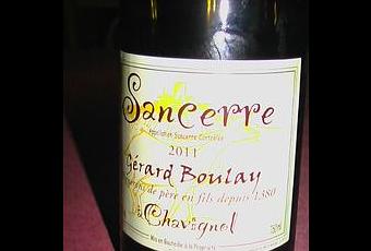 Un des mes amis, amateur de vins de Sancerre, se rend régulièrement dans cette région. Il m’a rapporté des vins de Gérard Boulay du millésime 2011. J’avais ouvert une bouteille de Sancerre Tradition, deux mois après l’avoir mise en cave, qui ne m’avait pas totalement satisfait, par son côté un peu mou dans la deuxième partie de bouche. Cette deuxième bouteille a comblé mes attentes et s’est montrée très bonne. Les autres cuvées "Monts Damnés" et "Clos de Beaujeu" vont patienter en cave.
