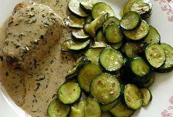 Réserver la viande sur une assiette et déglacer les sucs de la poêle avec le jus d'un citron, faire prendre un bouillon puis ajouter une cuillerée à soupe d'estragon frais finement émincé au couteau. Ajouter ensuite de la crème fraîche liquide jusqu'à l'obtention de la consistance souhaitée, relativement fluide.