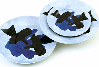 Service de table 6 personnes (33 pièces) en porcelaine de Limoges réalisé à partir d’une gouache de l’artiste, chaque pièce signée et numérotée 211/300. Certificat de M Israël conservateur du Musée Braque.