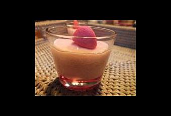 Pour le dressage utilisez des verres dans lesquels vous verseez un peu de sirop de grenadine puis répartissez la préparation dans les quatre verres. Réservez au réfrigérateur pendant au moins 4h. Une fois la préparation prise, terminez par une fraise TAGADA.