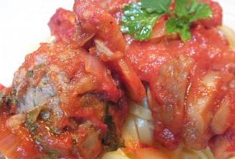 Parallèlement faites revenir le demi oïgnon, émincez les champignons de Paris puis ajoutez-les à l'oïgnon. Salez et poivrez. Coupez les tomates en petits dés et ajoutez-les. Puis ajoutez le coulis de tomates et le concentré. Laissez mijoter puis ajoutez les boulettes de viande à la préparation.