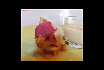 Pour le dressage : Superposez 5 sablés de feuillantines par assiette en intercalant avec des dés de nectarines. Avant de servir déposez une demie boule de glace sur le dessus.