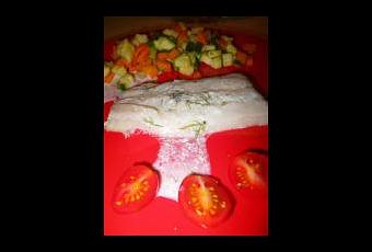 Dans un cuiseur vapeur, disposez dans le premier bac la moitié des feuilles d'aneth sur lesquelles vous disposez les filets de julienne. Dans le second bac mettez les carottes et la courgette que vous avez préalablement coupez en morceaux petits et réguliers. Faites cuire environ 20 minutes.