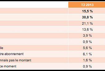 Selon la dernière étude du baromètre de l’économie numérique (Médiamétrie, chaire Économie numérique de l’Université Paris-Dauphine), un français du deux (46,3%) déclare payer son forfait moins de 20 euros par mois, soit une progression de +18,5% au dernier trimestre ! Ces offres low cost s’étant multipliées, notamment grâce à l’arrivée de Free Mobile, il n’y a plus que 4,8% des personnes qui payent plus de 50 euros par mois. D’après l’ARCEP, la facture mensuelle moyenne est passée de 39,8 euros en 2005 à 27,5 euros en 2012, soit une baisse de 31%. Enfin, on notera également que 83,2% des Français de plus de onze ans affirment être l’utilisateur principal d’au moins un téléphone mobile du foyer.