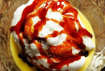 Et puis quand j'ai fini ma première crème anglaise j'ai versé la chose dans les bols avant de m'attaquer aux œufs à la neige… La chose était entre le trop liquide et le trop solide avec grumeaux et morceaux, une véritable aventure dans un bol quoi ! Et avec le blanc d'œuf ça ne s'est pas arrangé… du coup ces toutes premières îles coulantes, parler de flottante aurait été déplacé, ressemblaient plus à un décor de film fantastique de série Z qu'à une légère et savoureuse gourmandise. Mon fils l'a regardé, il a fait hum avant de conclure d'un ça ça se mange pas papa ! définitif.Alors j'ai fait et refait, avec beaucoup plus d'humilité j'ai fini par arriver à table avec des petites choses beaucoup plus sympathiques, mes îles flottantes !Mes îles flottantes