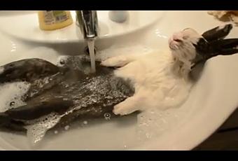 Si vous cherchez le lapin le plus heureux, il est ici en train de prendre son bain, à la cool !