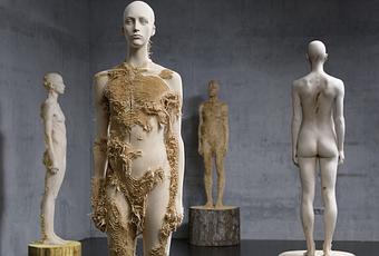 L’artiste italien Aron Demetz explore la figure humaine à travers ses sculptures en bois. L’harmonie visuelle souligne la noblesse et l’élégance du travail d’Aron Demetz.