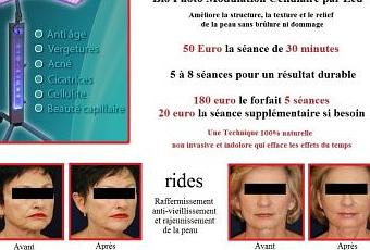 La photonthérapie dynamique, connue et reconnue pour ses résultats spectaculaires depuis plusieurs années aux USA et au Canada notamment, est une nouvelle technologie indolore, non invasive et sans effets secondaires utilisant la puissance des photons (lumière et couleurs). Le transfert d'énergie lumineuse en énergie cellulaire qu'elle produit permet d'entretenir votre peau, d'accélérer la croissance cellulaire et la circulation sanguine, stimulant ainsi votre production naturelle de protéines et de collagène.