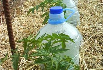 Irrigation de plants de tomates au goutte à goutte solaire.