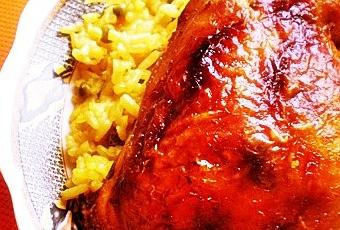 Au moment de servir, mettre le riz dans un plat de présentation et disposer au dessus les morceaux de poulet dorés. Garnir de persil haché et servir chaud .