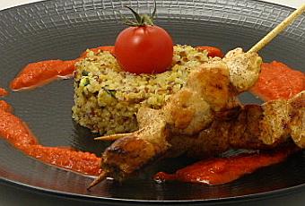 Tailler les blancs de volaille et former les brochettes. Les poêler et les saupoudrer de paprika fumé.