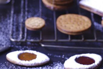 -Une fois les biscuits refroidis, recouvrir le biscuit inférieur de confiture ou de nutella puis recouvrir d'un autre biscuit