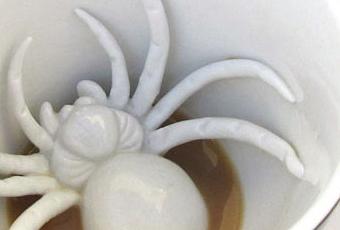 Des tasses pleines... d'humour! de l'humour noir comme le café qu'on prend plaisir à boire en se faisant peur... des requins, des araignées, des têtes de mort... il y en a pour tous les goûts! Mais pas pour les soupes au lait!