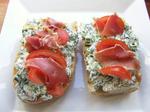 Puis j'ai rajouté un peu de tomate et de serrano finement tranché. Mais c'est presque anecdotique tellement les arômes de mon fromage aux herbes couvraient le reste!