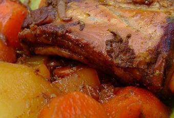 Peler carottes et pommes de terre, les couper en gros morceaux, et les ajouter dans la sauteuse. Couvrir et laisser cuire 20 minutes encore, les pommes de terre doivent être tendres.