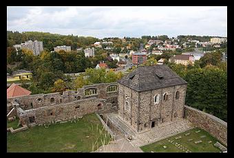 Et pourtant, la chapelle St Martin, St Erhard (variante germanique de Eberhard, sans doute Evrard en Français) et Ste Ursule est une splendeur unique d'envergure mondiale du style roman appelé "art staufien" (de "Hoenstaufen", famille impériale qui régna sur le St Empire Romain Germanique comme sur l'Italie entre la mi-XII ème et la mi-XIII ème siècle). Cet exclusif joyau, par chance préservé jusqu'à aujourd'hui, se trouve en la ville libre d'empire, puis ville royale d' Egra ("Cheb" en Tchèque et "Eger" en Allemand), au tout au bout ouest de la République, à seulement 5 km de la frontière d'avec la Bavière. Evidemment, je me doute que peu d'entres-vous connaissent ce bled de 35.000 habitants, sinon que vous en auriez éventuellement entendu parler en 1634, puisque cette effroyable fripouille d' Albrecht Wenzel Eusebius von Wallenstein y fut assassiné. Et pourtant, Egra est une ville d'architecture fabuleuse, historiquement riche, et mérite assurément une visite de plusieurs jours.