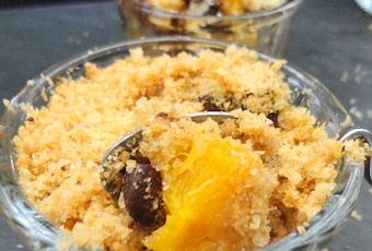 Cela faisait déjà un moment que je n'ai pas réalisé de crumble.L'occasion s'est présentée et j'ai pu concocter un à base de chocolatet d'oranges, un duo de saveurs qui a déjà fait ses preuves.Ce dessert a régalé toute la tablée alors à vos cuillères...