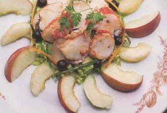 Sauce : le jus d’1/2 citron, 2 cs de vinaigre d’alcool de framboises, 6 cs d’huile de pépins de raisins,