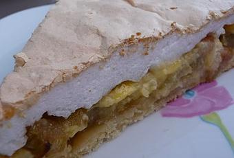 8/Pendant que le four se met à bonne température, étaler la meringue sur la tarte, j’utilise tout simplement une spatule, vous pouvez prendre la poche à douille aussi, et enfourner encore pour 10 minutes (assez haut dans le four) pour obtenir une jolie dorure de la meringue.