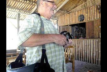 Nous avons eu la joie d'accueillir Jean Pierre Evrard, photographe (humaniste) - voyageur et orfèvre dans son domaine. Quand je l'ai rencontré, je fut d'abord intriguée par l'imposante sacoche en cuir que Jean Pierre portait toujours à l'épaule... Curieuse de nature, je m'approchais de lui pour observer de plus près.