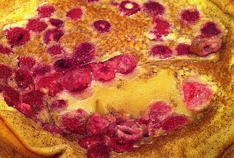 • Répartissez quelques framboises dans le fond d'un moule à manqué préalablement beurré.