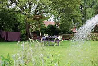 Une majeure partie du terrain était à l'état de patûre. Nous avons donc tout retourné et semé à l'automne dernier. Nous avons commencé à planter quelques fruitiers supplémentaires et à dresser quelques parterres de fleurs. Les premiers résultats sont arrivés avec le printemps. Tout prend vie pour notre plus grand bohneur. Pour fêter cela, ce week-end nous avons craqué pour une nouvelle table de jardin, un peu plus grande que la précédente, pour acceuillir la famille et les amis plus dignement ! Vous remarquerez que ce nouveau mobilier de jardin est assorti à mon linge qui sèche tranquillement, je sais, c'est la classe (mdr) !