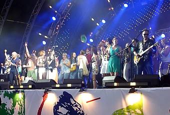 Cette chanson est la dernière et donc Boris Grebenchikov a demandé aux jeunes filles de monter sur scène pour l’accompagner.